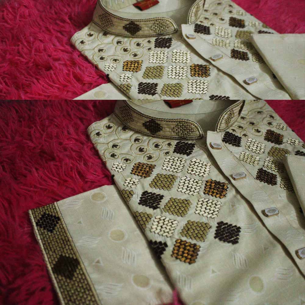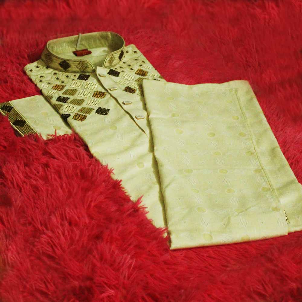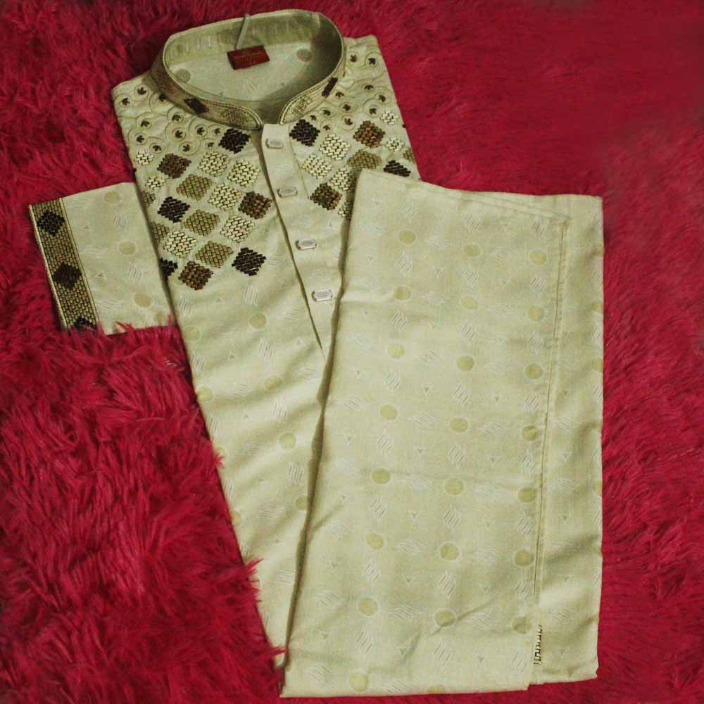Golden color 1 piece premium quality panjabi offer for new year 2025 for men